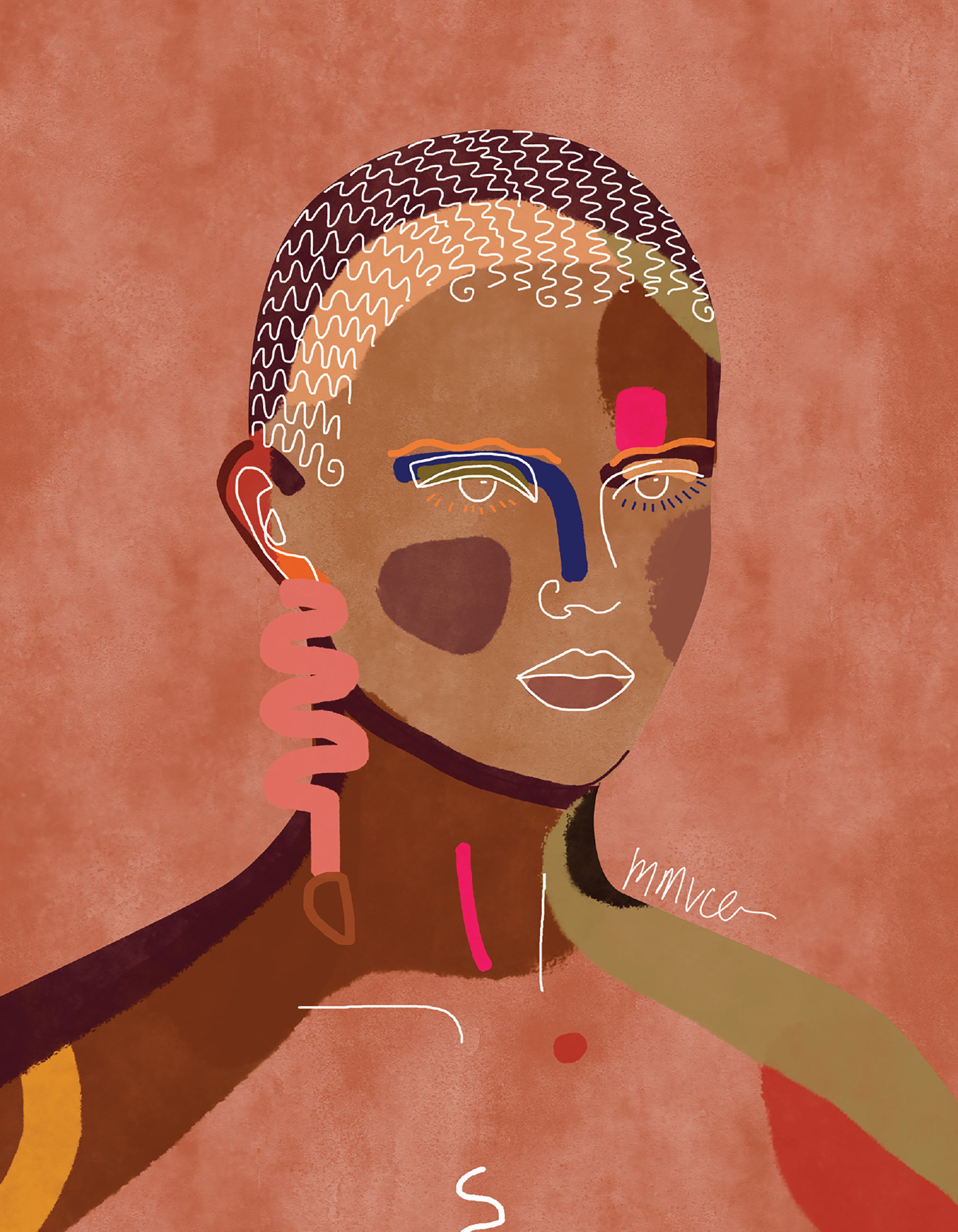 The inspiration behind Mafalda's work is symbolism and spiritualism based in her Mozambican culture. The artworks she creates are based on souls rather than real human figures representing her ancestors from the Nharinga people of Mozambique. The stylised and symbolic features that suggest human form and express strong human emotions. Souls are similar to spirits, they transport our energy and emotion and so Mafalda explores that in her art. She portrays the Mozambican women who have raised her and inspire her every day, like her mother , grandmother and great-grandmother. The colourful geometrical shapes and symbols are a language that Mafalda has developed through exploring the visual elements in art and in her own mixed and diverse background.