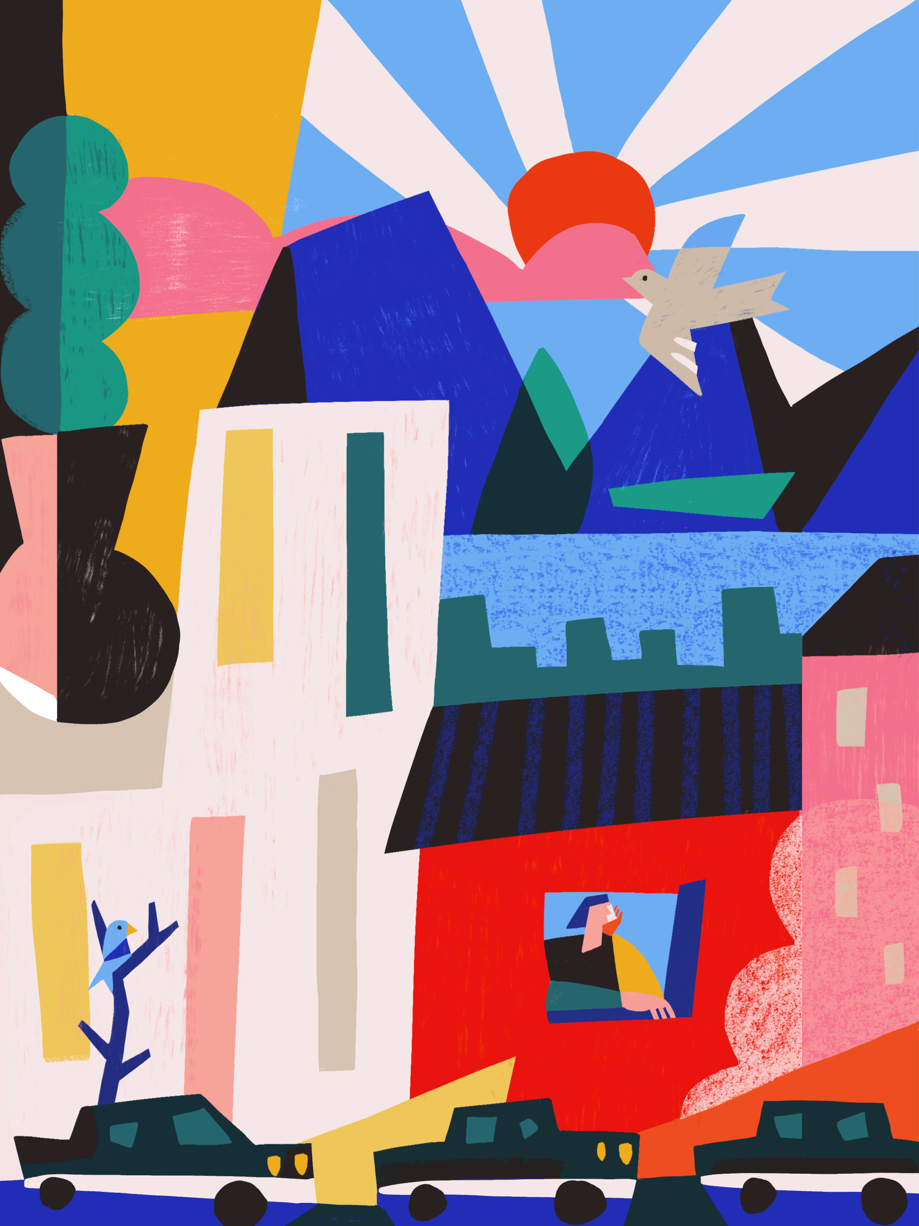 Claire is a French, Dublin based artist, illustrator and muralist. Her colourful, bold and minimal style is inspired by the cubist art movement. She loves to diversify her practice and work on a variety of mediums, from digital illustration, acrylic painting to large-scale murals using spray paint.