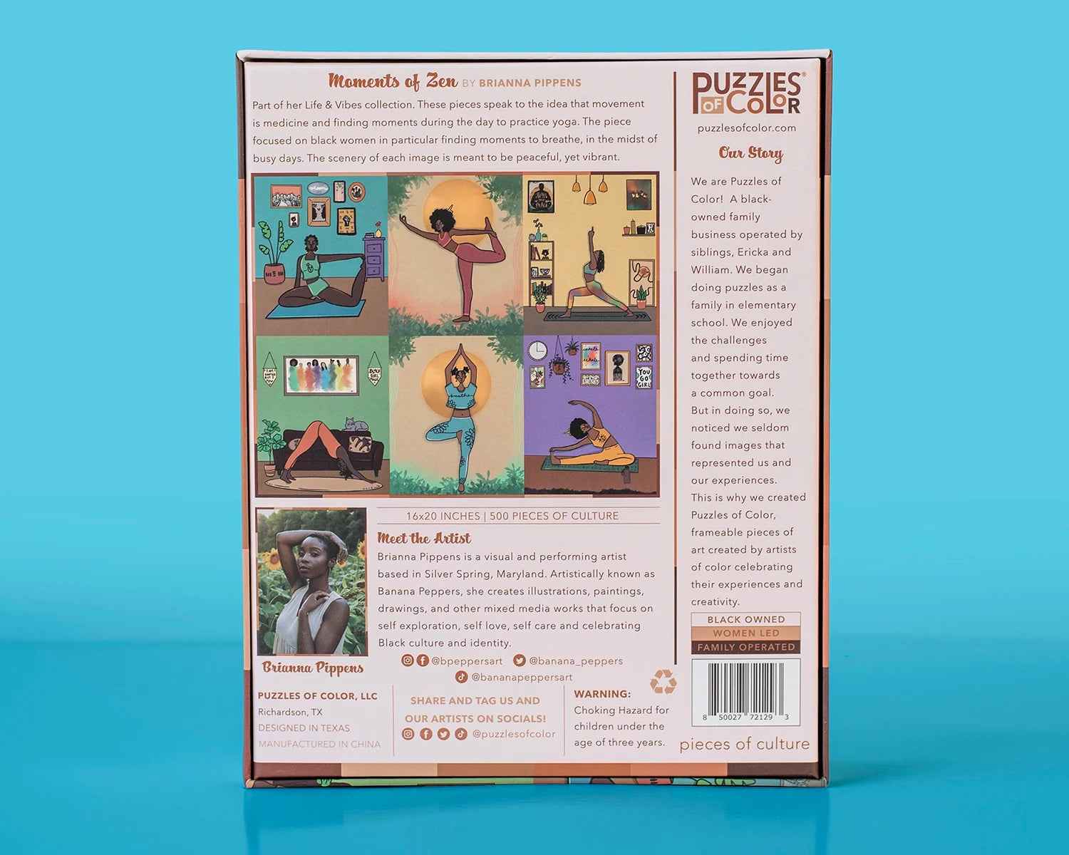 Unwind, refresh, and restore your inner harmony with "Moments of Zen" our captivating 500 piece puzzles designed to help black women find their serene moments amidst the hustle and bustle of their busy lives. Embracing the idea that movement is medicine, this puzzles provide a dedicated space for yoga practice and deep breathing, fostering a sense of calm and well-being. Each image showcases a harmonious blend of peaceful and vibrant scenery, perfectly complementing your relaxation journey. Elevate your downtime with "Moments of Zen" and create a tranquil oasis within your everyday surroundings.