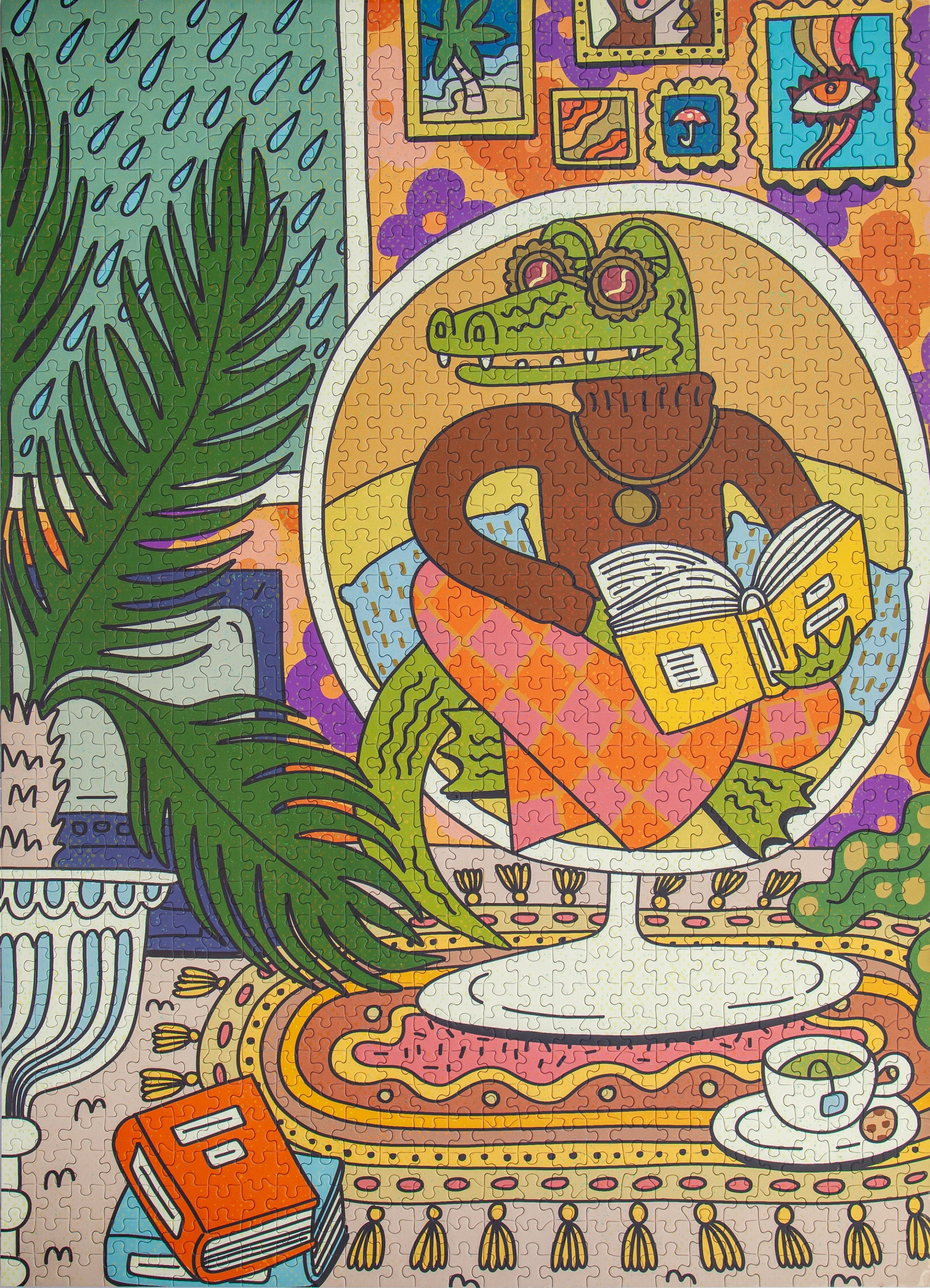 Nostalgic, moody and vibrant, this puzzle is filled with the unique color work and funky, cool art that artist Emily M. Reay is loved for. It's a fan favorite and one of the most framed puzzles we offer. A modern joy in 1,000 illustrated pieces!