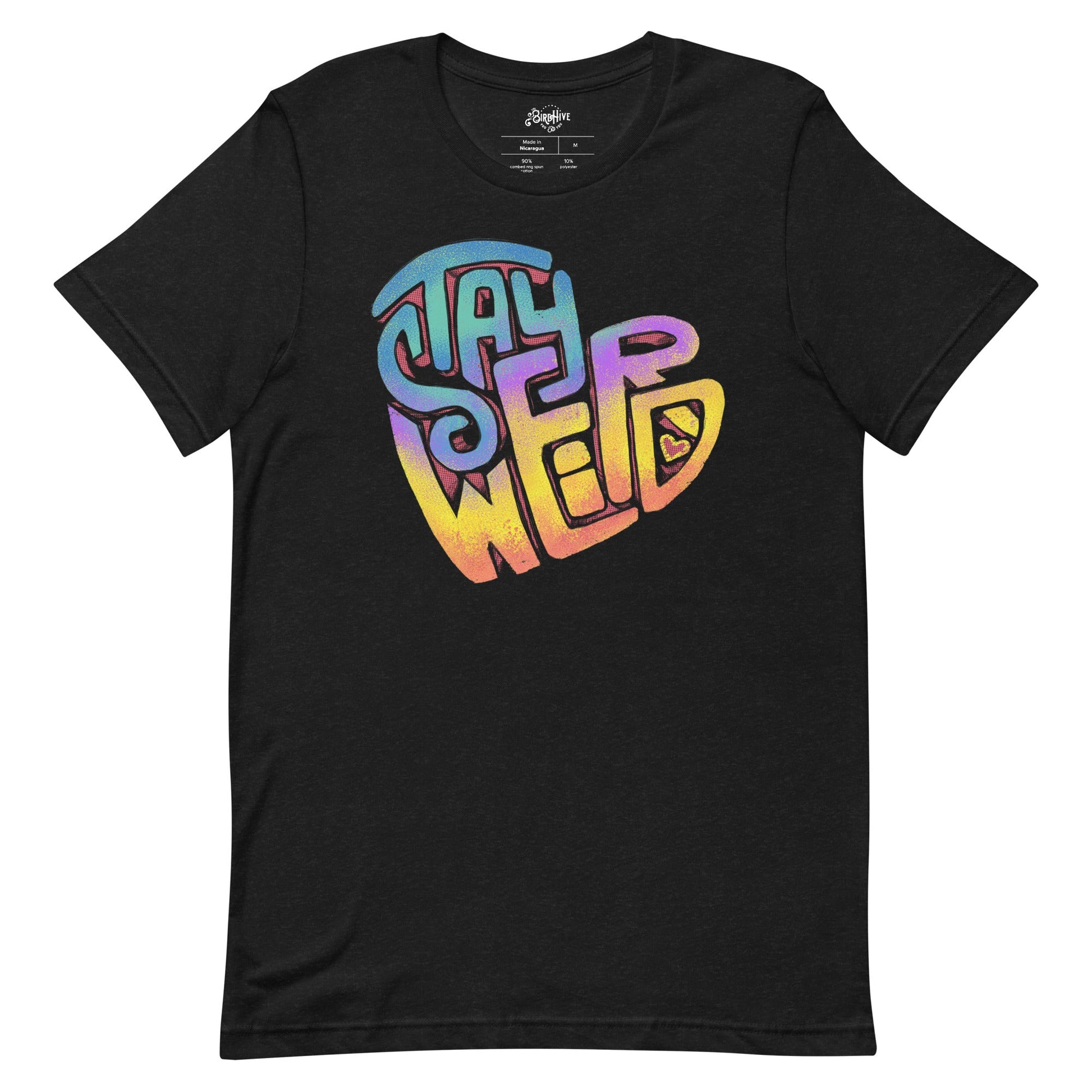 Embrace the weird and wonderful! Our “Stay Weird” design serves as a reminder to all to stay true to yourself and embrace the unique things that make you you. Maybe you’re a little goofy, a little quirky, a little zany, or eccentric. How ever you want to put it, you’re a weirdo, but we are too! Let your freak flag fly with this bold design.