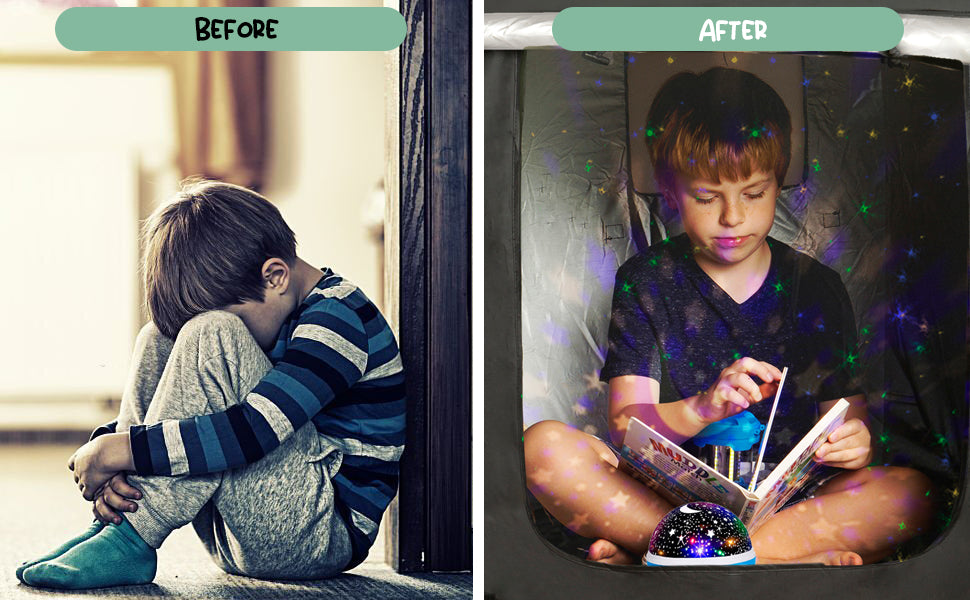 Therapist-Designed Sensory Blackout Tent for Kids WITH Complimentary Galaxy Light Projector