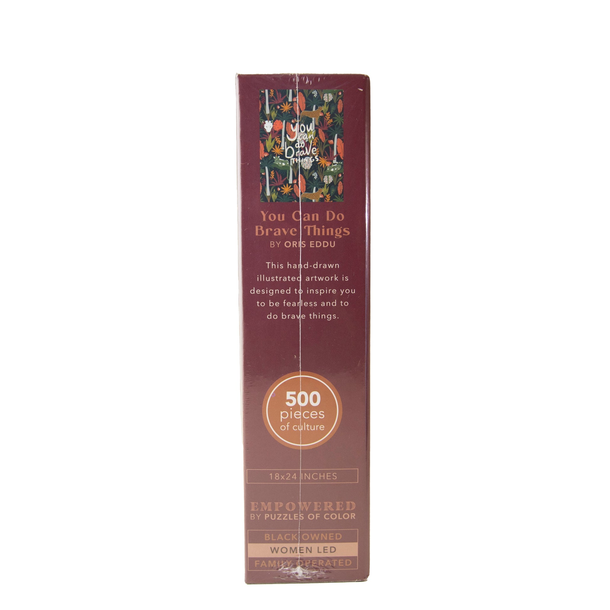 - Pieces: 500 | Puzzle Size: 18x24 in | Matte UV Varnish, precision cuts on sturdy cardboard. | Box Size: 8x8x2 in